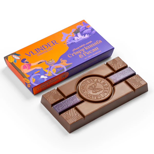 This flavor hits like a warm hug. Roasted pecans, buttery kunafa, and premium chocolate come together in a bar that’s comforting yet elegant.